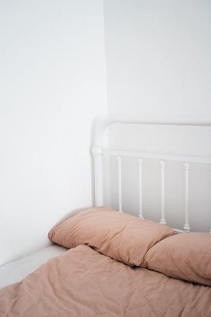 To connect the side rails, align them with the pre-drilled holes on the headboard and footboard. Use the provided bolts to secure them firmly. Tighten the bolts in a star pattern to ensure even pressure. Double-check that the rails are level and the frame is balanced. Proper alignment is crucial for the bed’s stability and longevity.